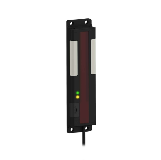 工作原理:通過發射和接收可見紅色或紅外感應光束,當光束被物體遮擋或反射時,接收器測量光圖像的變化,從而識別目標物體或表面狀態的變化。在零部件拾取應用中,光幕可以檢測零部件是否被正確拾取,并通過作業指示燈顯示不同狀態。