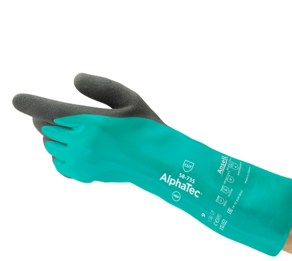 耐用性更強:同樣的丁腈成分使 AlphaTec? 手套比同等厚度的橡膠或氯丁橡膠手套更耐用,具有 EN 和 ANSI 4 級耐磨性
