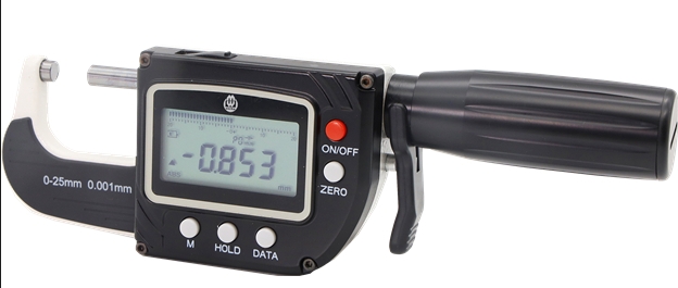 適用于測量外形尺寸 特殊接觸面·不銹鋼材質,帶微調滾輪·三個按鈕:OFF/ON,ZERO,mm/inch·CR2032·塑料盒包裝